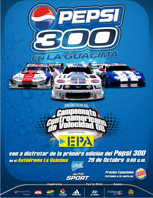 por mi si esta tuanis la idea de Pepsi 300 y es un buen giro de las ya tradicionales "Copas"... claro que ojalá se cumpliera lo de 300 km en una sola je je je... seguiremos esperando chavalos.