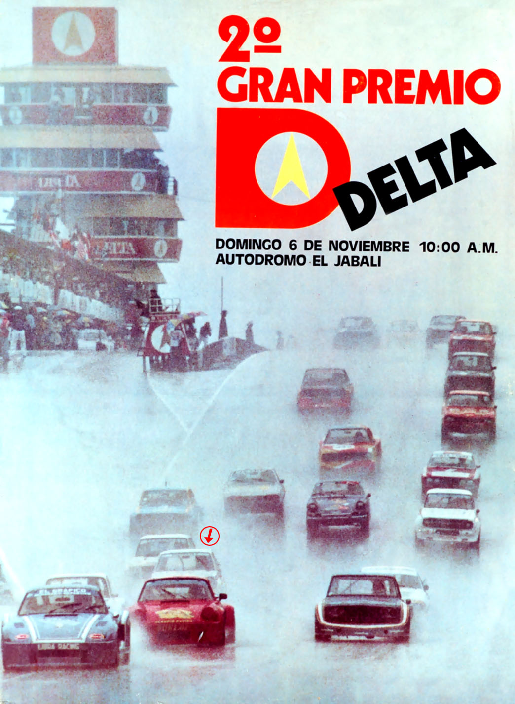 Foto 1: Afiche promocionando el 2do GP Delta en El Jabali ELS. La foto es del 1er GP Delta, por ahì del año 1980. El de la flechita es mi papa en un Starlet 1.300cc. Adelante van varios Porsches, el rojo era el que Enrique Molins corria en IMSA en USA durante esos años, y tenia el record de pista con 1.33.