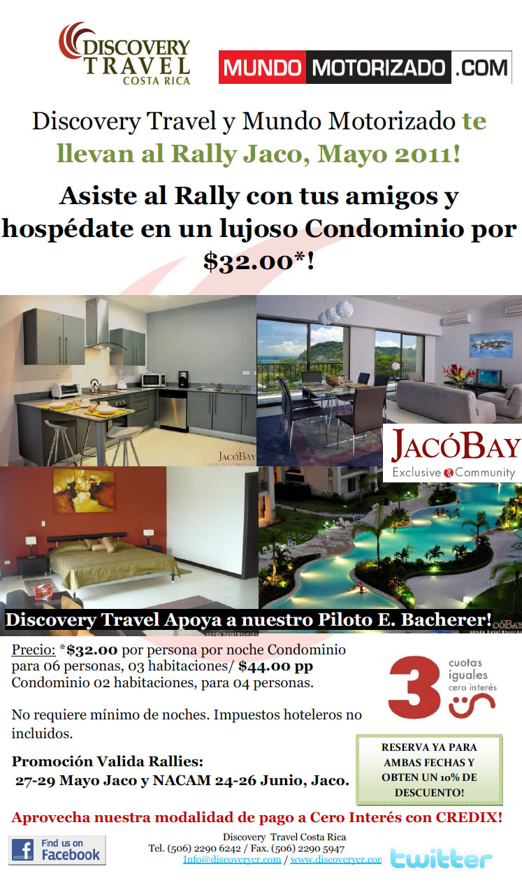 Para los que quieran quedarse en Jacó luego del rally,ó, ir reservando para el Nacam