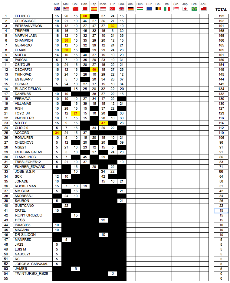 Re: TABLA DE POSICIONES - CAMPEONATO MM.COM F1 2009