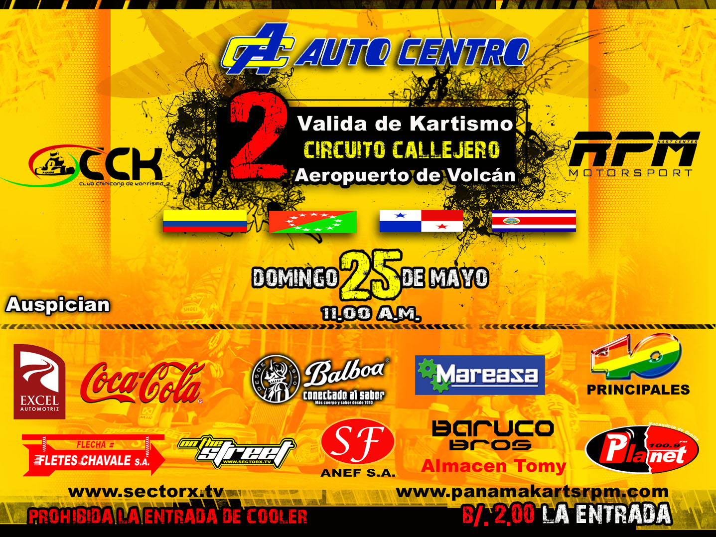 el motor mio esta semi-modificado, sera que me apunto, o hay que ir con un motor como el de juani,o vieto?nanne escribió:Aqui les adjunto la informacion brindada por el Club de Kartismo de Chiriqui, el cual esta invitandonos a la fecha del 25 de mayo en Chiriqui. ACEK esta ayudando a organizar un grupo de Ticos para ir a participar. La idea seria que se manden todos los karts juntos en un camion para bajar costos. Hay campo para 20 karts en este camion asi que se le dara este cupo a los primeros 20 kartistas que quieran participar. Si tienen interes en participar favor mandar un correo electronico a hnanne@gmail.com con su nombre completo, numero de telefono, # de pasaporte, categoria y cualquier otra informacion que consideren importante.
