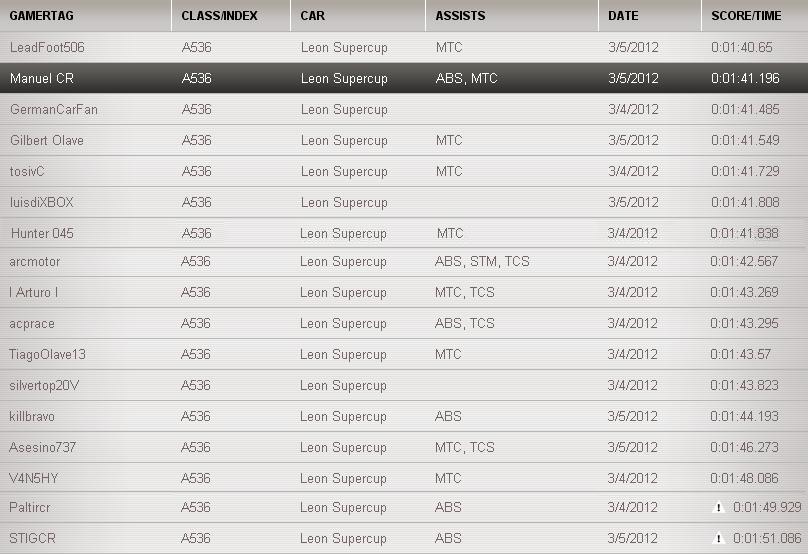 GameRacer escribió:Manuel, solo por curiosidad esos 2 tiempos arriba del tuyo y el mío fueron hechos con carrros tuneados o sin tunear?