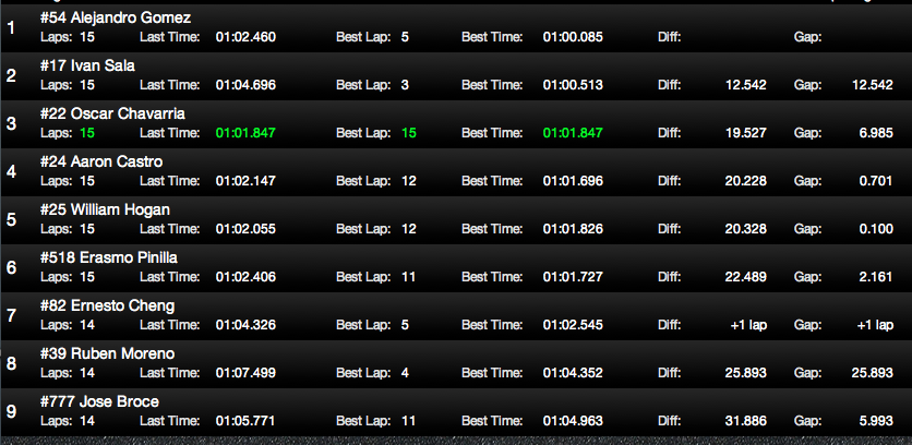 LOS MEJORES TIEMPOS DEL SABADO :