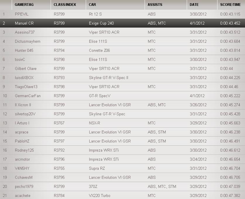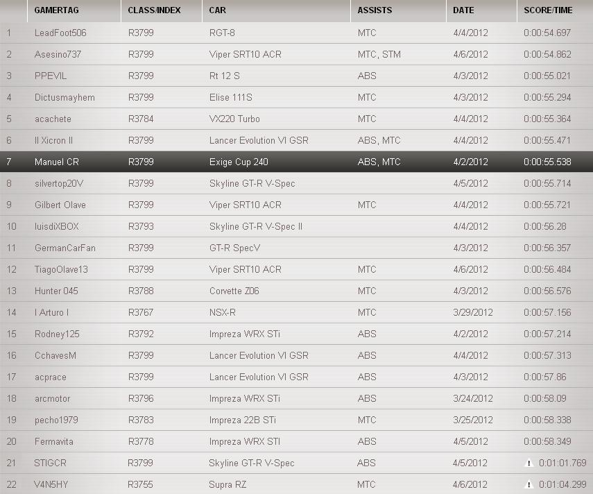 pero en cual pista de top gear le estan dando.. no me salen sus tiempos en ningun leaderboard!