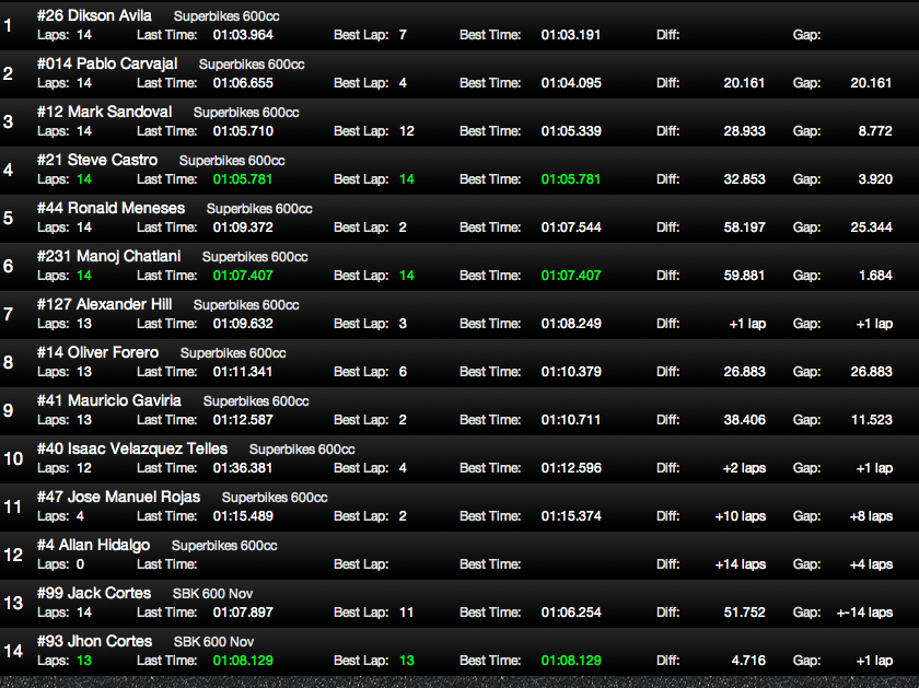 LOS MEJORES TIEMPOS DEL SABADO :