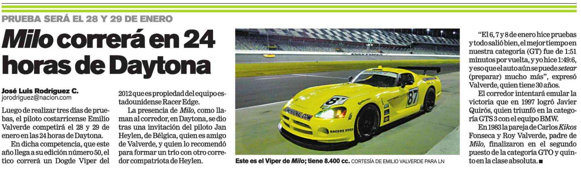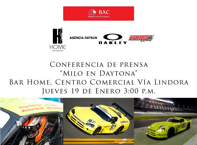 El piloto costarricense Emilio Valverde está completamente listo para enfrentar por segunda vez en su carrera una de las competencias más importantes del automovilismo mundial y norteamericano, las 24 Horas de Daytona que además este año celebrará su 50 aniversario.