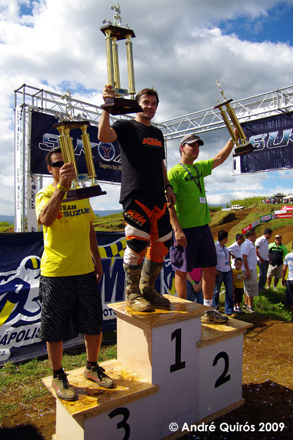 Sabanilla de Alajuela (6 de diciembre, 2009) – La ventaja con la que llegó a la fecha final demostró ser suficiente para que el piloto Roberto Castro se proclamara campeón nacional de la categoría MX1 esta tarde en la pista La Olla. Johan Mora fue un digo rival y pese a que venció a Castro en las dos largadas de hoy apenas pudo recortar de 18 a 12 puntos el déficit.