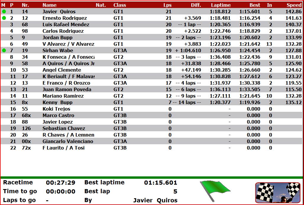 La verdad estuvo muy buena la carrera... y muy tuanis saber que la puedo ver desde bien lejos de Costa Rica... qué buen esfuerzo el de todos los que ayudaron... muchas gracias... ahora esperar el otro heat...
