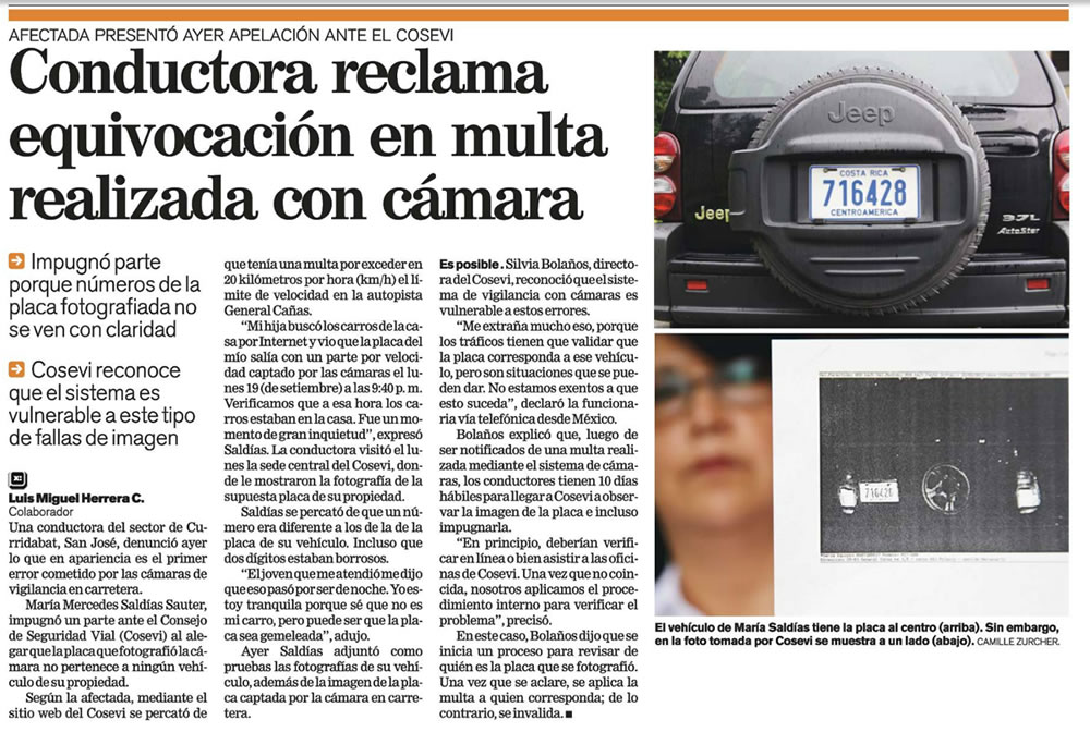 Ya con solo esos casos medio conversados, debería ser suficiente para traerse ese jueputa sistemita al suelo, NO sirve, hace enredos, no es infalible. No solo por las cámaras en sí, sinó porque a uno nadie le asegura que la placa la anda el carro de uno y uno va a darse cuenta a tiempo para apelarlo, y que lo jodan sin que uno haya sido, el responsable es injusto. Ahora entonces uno tiene que andar buscando todas las semanas entre MILES de placas a ver si lo premiaron, y si por casualidad yo estoy en Guanacaste y me sale un parte en Cartago, entonces tengo que ir hasta el culo del mundo a gastarme tres días en trámites?? Y si el brete no me lo permite? Y quien me paga los gastos de eso??? No.