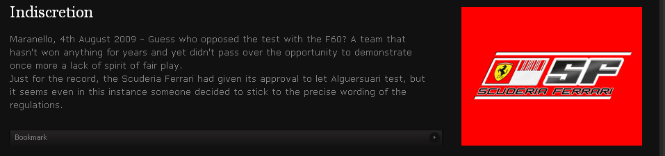 Ahora, que si TR pidio permiso para Alguesari y no salio en las noticias pero MS si, la verdad no me extraña. Que Haug diga que no pidieron permiso si me extraña. Jugando un poco de abogado del diablo, al rato le pidio permiso primero a la FIA y le dijeron que no? Y sin sacar una nota de noticias como Ferrari? No es del todo volado.