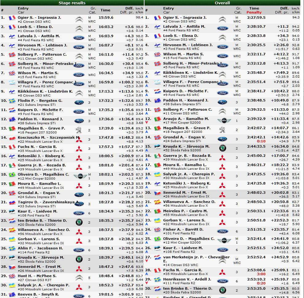 Después de conseguir en el último tramo, el Power Satge, el tercer mejor crono, Ogier, ha comentado: "Estoy muy contento, hemos tenido un fin de semana perfecto, el coche ha sido perfecto y Julien también. Me gustaría dedicar esta victoria a todo el equipo que ha hecho un coche perfecto. Han confiado siempre en mí desde el comienzo de la temporada y después de mi error en México. Es la mejor manera de volver. Queda un largo camino por recorrer en el campeonato, pero ahora estoy mejor posicionado. "