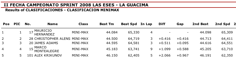 MM.COM : CLASIFICACIONES 2DA DE KARTISMO SPRINT 2008