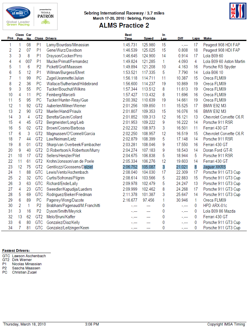 Re: ALMS: 12 Horas de Sebring -20 de marzo de 2010