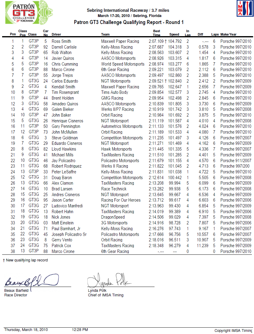 Re: GT3 PATRON : TIEMPOS DE CLASIFICACION EN VIVO DESDE SEBRING
