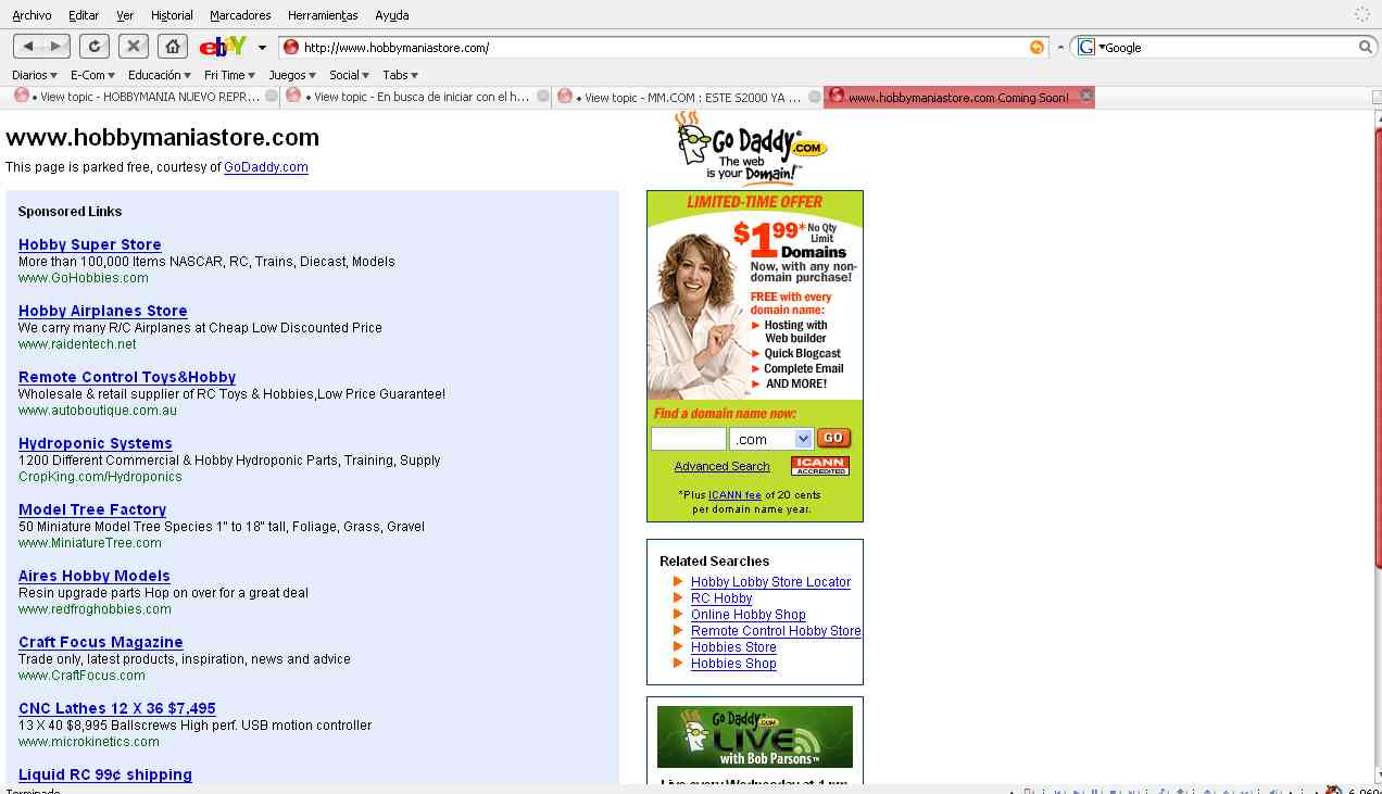 Nuestra Pagina Web , ya casi esta terminada ... Nuestro dominio esta comprado sera : http://www.hobbymaniastore.com