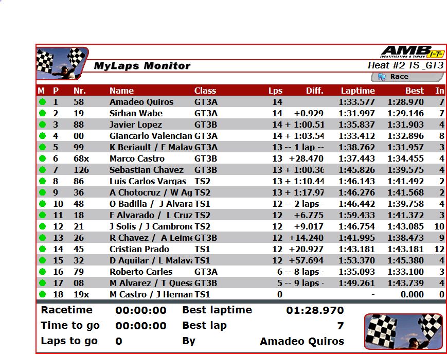 muy bien Armando!! estaremos pendientes!!-MM- escribió:Dentro de 30 min aproxcarlos e. gonzalez escribió:a que horas comienza el 2do heat de gt1?