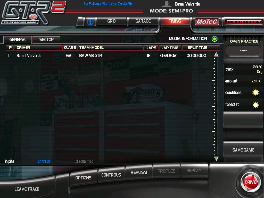 En el rfactor no se si es mi seting de la logitech o que pero siento que el carro jala para todos lados como si estuviera haciendo drifting..jeje como que no tiene buen agarre la pista. no logre bajar de 1.05 en el rfactor nomas le di como 10 vueltas..
