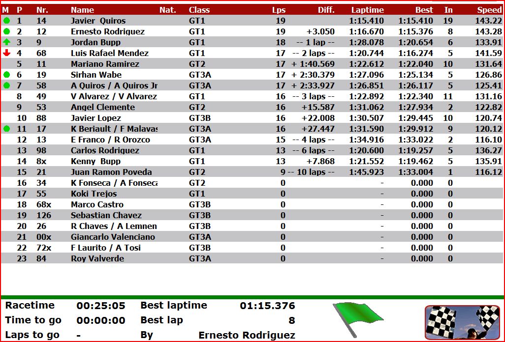 En GT3 va siendo liderada por Sirhan Wabe, segundo Amadeo Quiros y Tercer lugar Javier Lopez