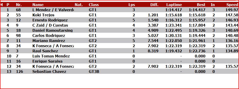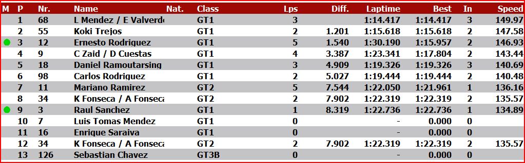 Actualmente a los 13 minutos se encuentra detenida la clasificación y así van los tiempos.