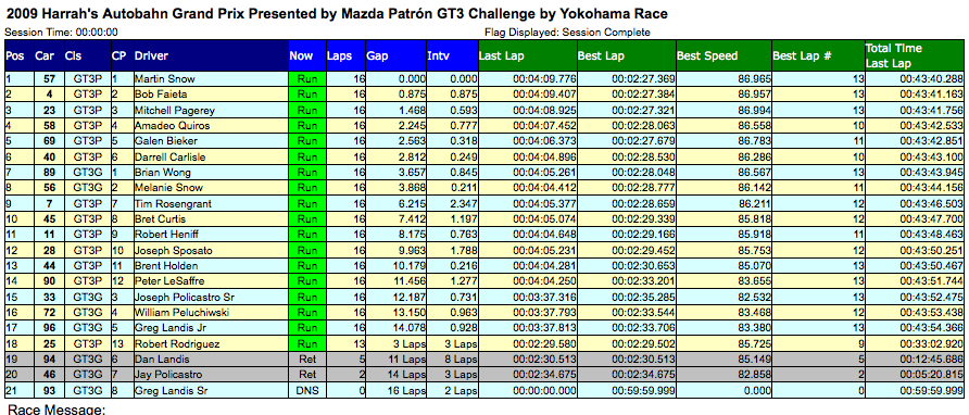 2 57 GT3P 2 Martin Snow Run 19 0.589 0.589 00:02:28.018 00:02:28.018 86.489 19 00:47:24.206