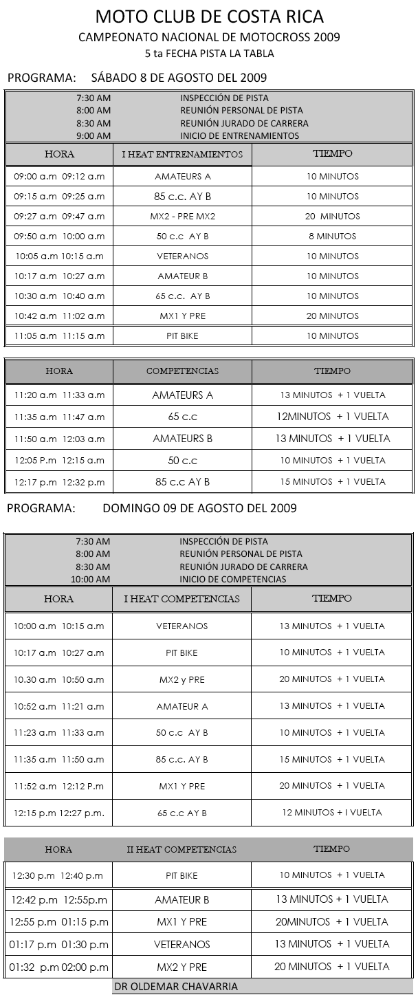 domingo, septiembre 20, 2009 Motocross VII Fecha: Pista Bagaces