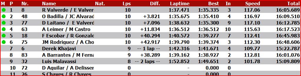 Estoy totalmente de acuerdo con vos mi hermano JK, Mauricio es un piloto de cualidades superiores, astuto, muy técnico y sobre todo aunque agresivo es muy analítico en su forma de correr. Para mi gusto es un pilotazo tanto en autos como en motociclismo racing, siendo uno de los más premiados campeones chapines y para realzar más su palmarés, es hijo de un gran campeón de motociclismo racing, Leonel Roque, una persona muy especial y a quien aprecio mucho.JK. escribió:Greg68 escribió:Luis Méndez con un motor cansado entre maquinas nuevas, ay es que se demuestra la calidad del piloto
