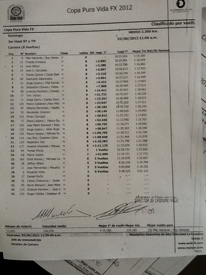 Esto fue porque basamos nuestra información en la transmisión de televisión de la cual fuimos parte, el streaming de video funcionó perfecto. Yo decidi mantener el equipo de fotografos y video el 100% del tiempo en la pista y realmente nos funcionó, pues logramos tener el material de casi todos los accidentes. Cada heat de ST teníamos 6 camaras en autos, y así... etc etc