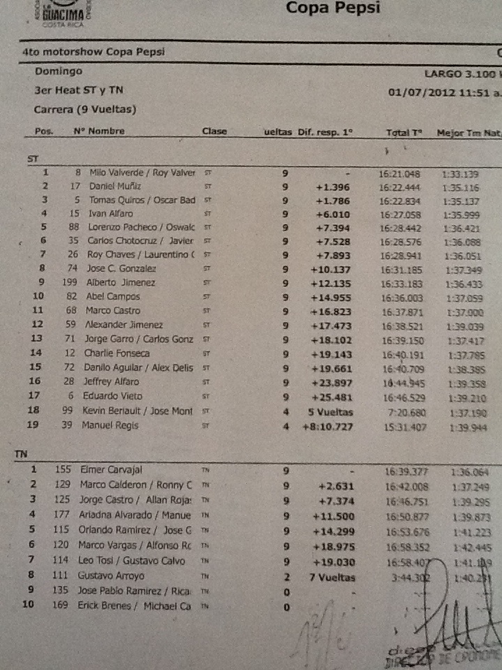 Resultados Oficiales primer heat