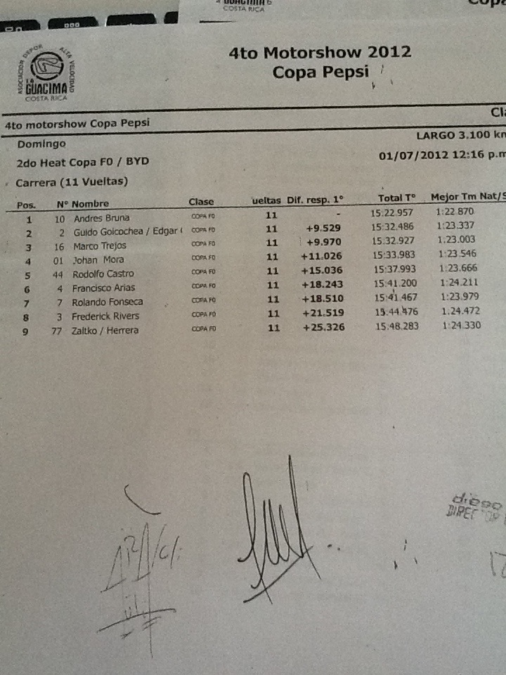 OJO, esto fue error del Narrador, la bandera negra fue para el carro Numero 71 de "Carlos Gonzalez / Jorge Garro( Civic de Economy ) y no para el carro Numero 74 de Jose Carlos Gonzalez ( Nissan Pulsar de el Guate