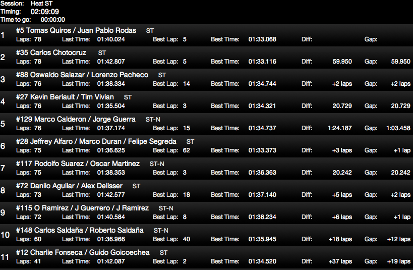 Felicidades a Quiros/Rodas. Vuelta más rápida y después del abandono de los Valverde NO perdieron la primera posición y sacándole una gran ventaja a Choto/Collado. Muy bien lo de Salazar/Pacheco.