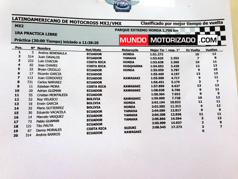 Re: LATINOAMERICANO MX2 Y VETERANOS EN ECUADOR - SEGUIMIENTO