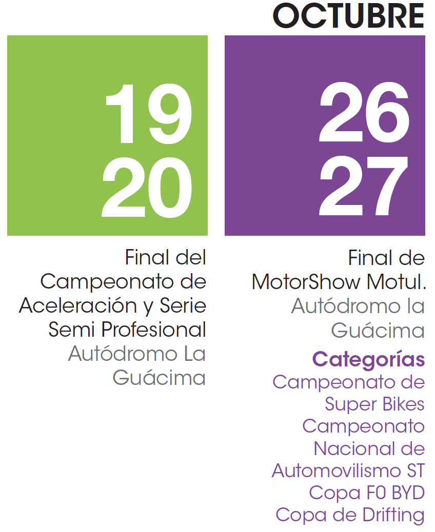 CALENDARIO DE MOTORES AUTODROMO LA GUACIMA DE OCTUBRE