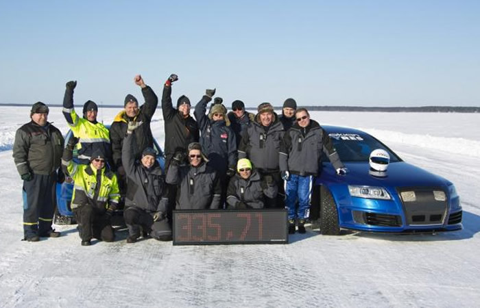 En los dos recorridos oficiales que hizo Laitinen a la pista que tiene una longitud de 12 kilómetros de hielo natural, el Audi RS6 mantuvo una velocidad promedio de 335,713 kilómetros por hora.