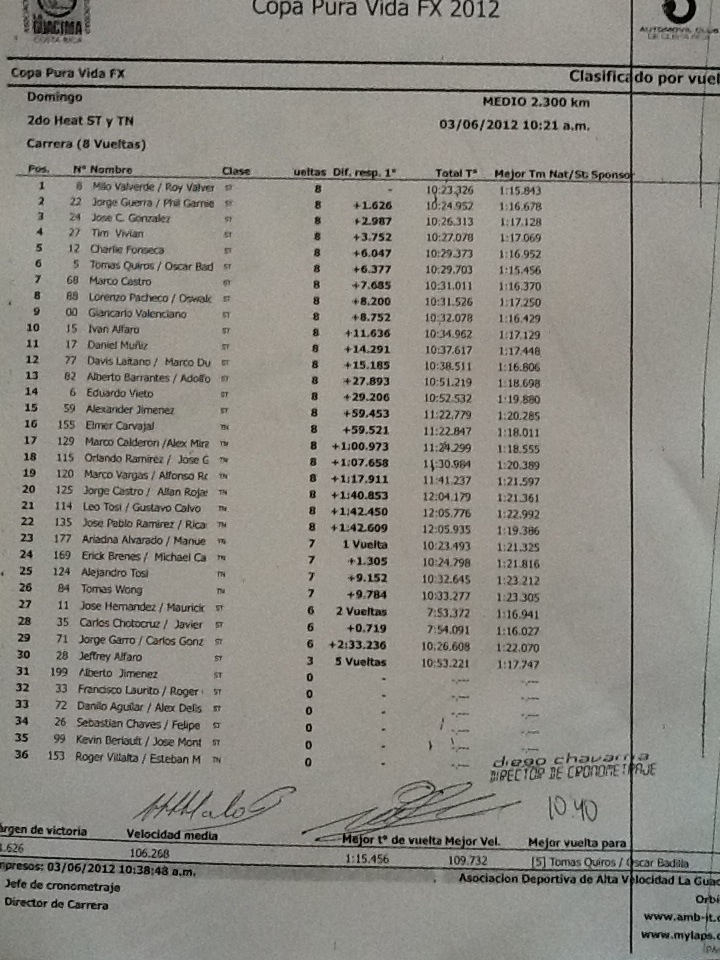 Esto fue porque basamos nuestra información en la transmisión de televisión de la cual fuimos parte, el streaming de video funcionó perfecto. Yo decidi mantener el equipo de fotografos y video el 100% del tiempo en la pista y realmente nos funcionó, pues logramos tener el material de casi todos los accidentes. Cada heat de ST teníamos 6 camaras en autos, y así... etc etc