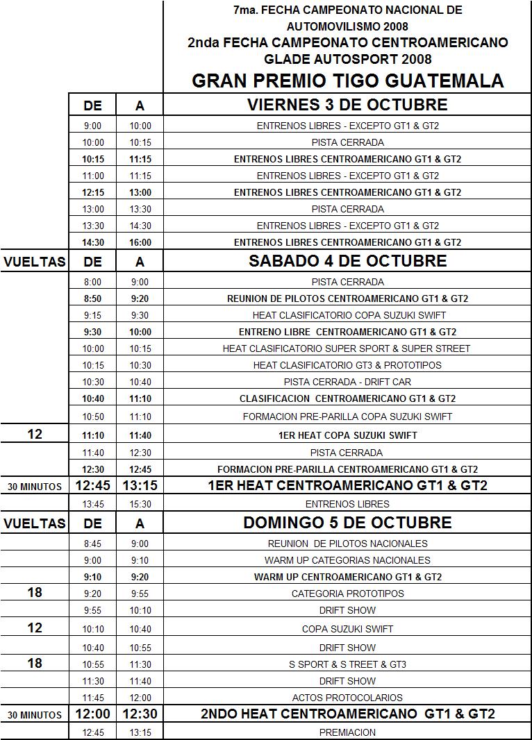 Les posteo el horario que nos enviaron a todos los pilotos de las categorías participantes. Yo personalmente hable ayer con el Sr. Migoya por la tarde y lo último que me informo fue que este sería el horario. Dos heats, uno sábado y el otro domingo.
