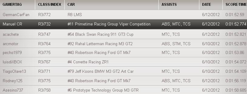 Tambien, igual que Armando, si se ponen a hacer los tiempos en ¨Vuelta Rapida¨ con el Fantasma como guia y sin la simulacion de desgaste creo que si se hacen 52´s como nada.