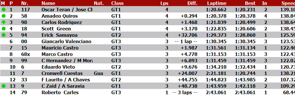 Terán pierde 2 posiciones , Quiros primero segundo Rodriguez y tercero Terán
