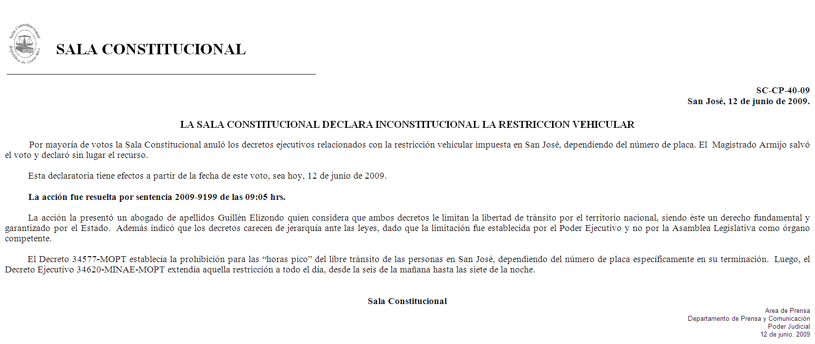Di maes es CR siempre hay alguien dispuesto a atravesar el ruco en lo que sea... juepucha desgracia porque por ponerse de puristas se deja de lado el sentido práctico y ahí es donde la cosa va como el cangrejo. Creo que este fallo falla (valga el juego de palabras) en no sobreponer las necesidades y el bienestar colectivo por encima de los intereses individuales. Transitar en SJ era un caos y si bien la restricción no lo solucionó (obvio que no iba a pasar) pero por lo menos las cosas mejoraron y además es importante que los ticos aprendan un poquito, aunque sea a huevo, a no ser tan malamansados y tener que respetar algún tipo de orden. A mí también me tocaba sufrir la limitación de un día a la semana y la verdad prefiero eso mil veces, así uno se ordena para evitar pasar por la zona por completo al menos una vez por semana, y a cambio goza de otros 4 días en los que las condiciones pueden ser bastante más favorables que si todo el mundo sale a lo loco.