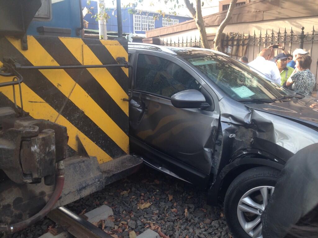 Igual, no se saca nada con pitar, el tren viene a 25 Km/hora usted viene a 50 km/h con los vidrios cerrados y tal vez con el radio puesto en el mejor de los casos aunque lo suenen antes usted esta fuera de la jugada, lo mejor es lo que usted dice, al aproximarse a los "rieles" fijese a ambos lados de la via... o acaso cuando va de peaton a pasar la calle usted no hace lo mismo???? considero que simplemente es un descuido de los conductores, y a como se ve este, cree que por tener carro "nuevo" o mas bonito que los demas, el tren va a parar y la culpa es de otro... nunca del mal chofer... ja ja ja... bueno a ver quien le va a reparar ese arreglo.