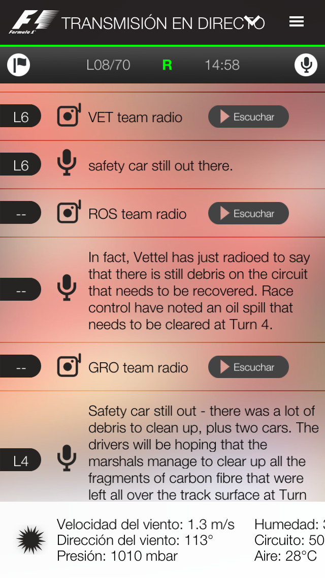 Muchachos, la nueva actualización del APP oficial de F1, le permite a uno escuchar todos las conversaciones por radio de los equipos... vieran que chuzo!!
