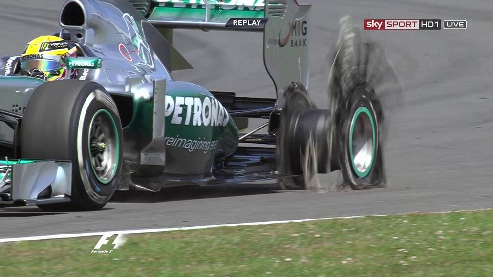 Hamilton revienta llanta...