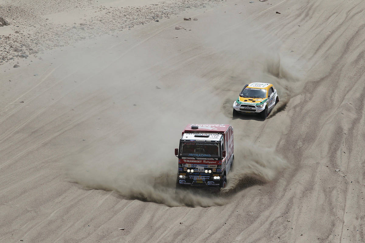 Para los coches las cosas no serán más fáciles. En esta zona el año pasado se quedaron atascados todos los pilotos oficiales, al menos en una ocasión, incluidos grandes ases en la arena como Peterhansel. Y para 2013 la organización ha prometido que será todavía más difícil. Se comienza con 50-60 km de dunas muy complicadas. Muchos participantes pasarán la noche en las dunas."