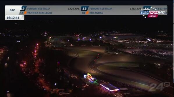 Cuando el líder se encuentra en la vuelta 116, y corren ya sin nada de luz natural: