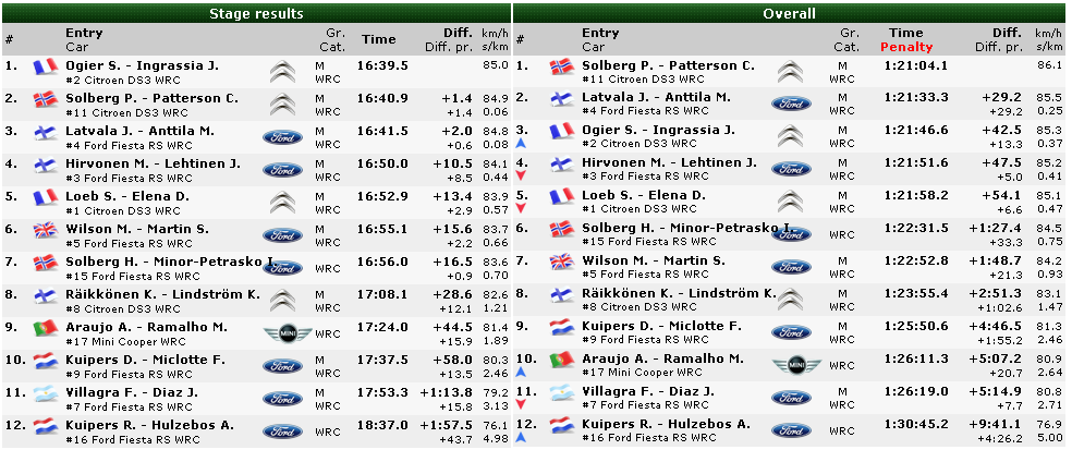 4 2 S. OGIER J. INGRASSIA CITROEN DS3 WRC WRC 18:34.8 +16.3 (+6.9)