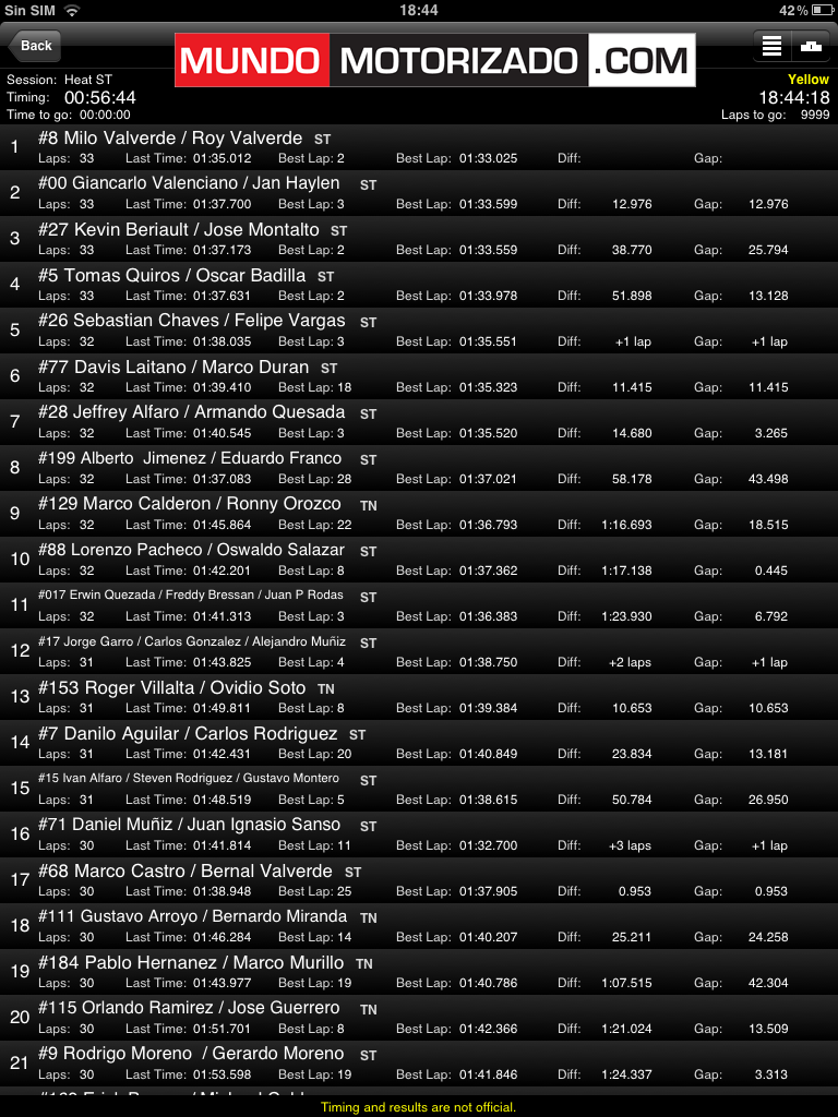 En minutos iniciará el endurance de Super Turismo, los hermanos Valverde ganadores de la pole position con un tiempo de 1:32.143, segundo saldrá José Andrés Montalto con 1:32.888 y tercero Jan Heylen con 1:33.356.