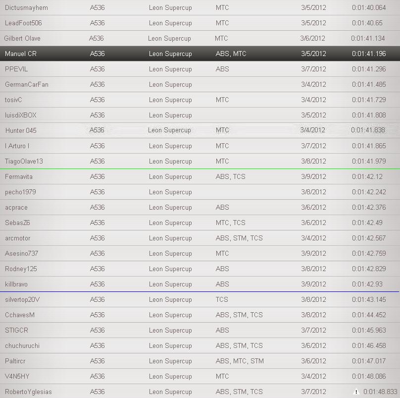 Con la tabla de tiempos estoy viendo a quienes los identificamos como Amateurs y a quienes como Pro´s. Asi me estoy basando para el DTM darle clases B a los amateurs y clase C a los Pro. Y la matematica esta vacilona, ya q los amateurs estan dominando la tabla de tiempos de ese evento en Hockenheim.