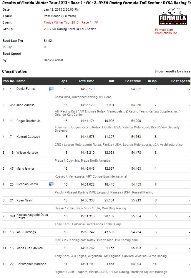 EXCELENTE LABOR LA DE TODOS LOS PILOTOS TICOS EN FWT 2013, LOS FELICITOS A TODOS, AQUI ESTA LA CREMA Y NATA DEL KARTING MUNDIAL.