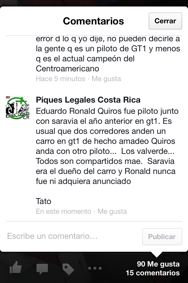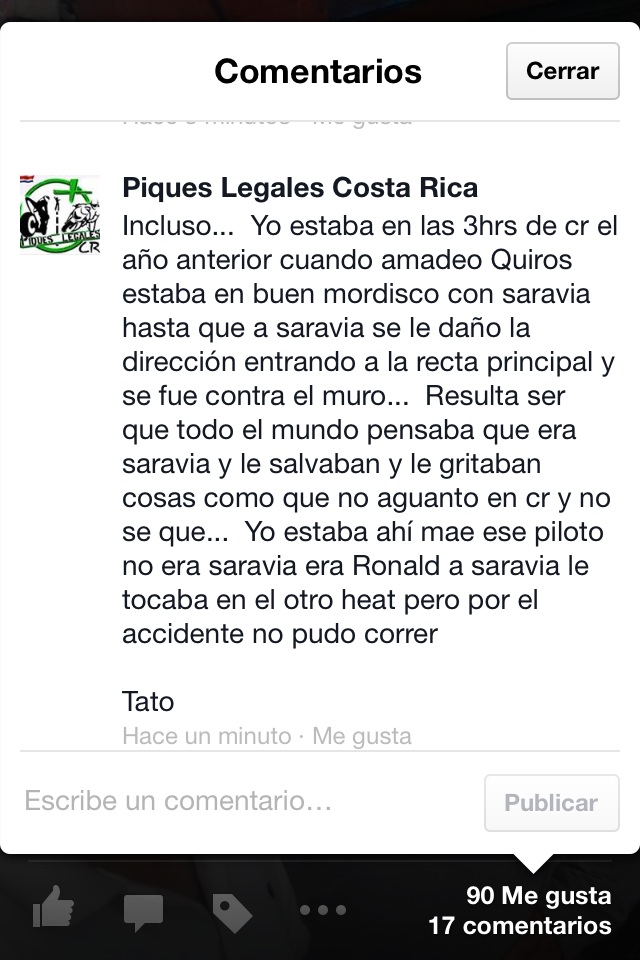Estas subestimando al muchacho... no solo es Campeon de GT1 sino que tambien preparador de carros para USA ... es una eminencia mundial en temas racing... todos los GT1's del CCA los preparo y probo el mismo. :Pmarketair escribió: Este es el nuevo " mejor equipo de centro america" , Quiros Racing Team
