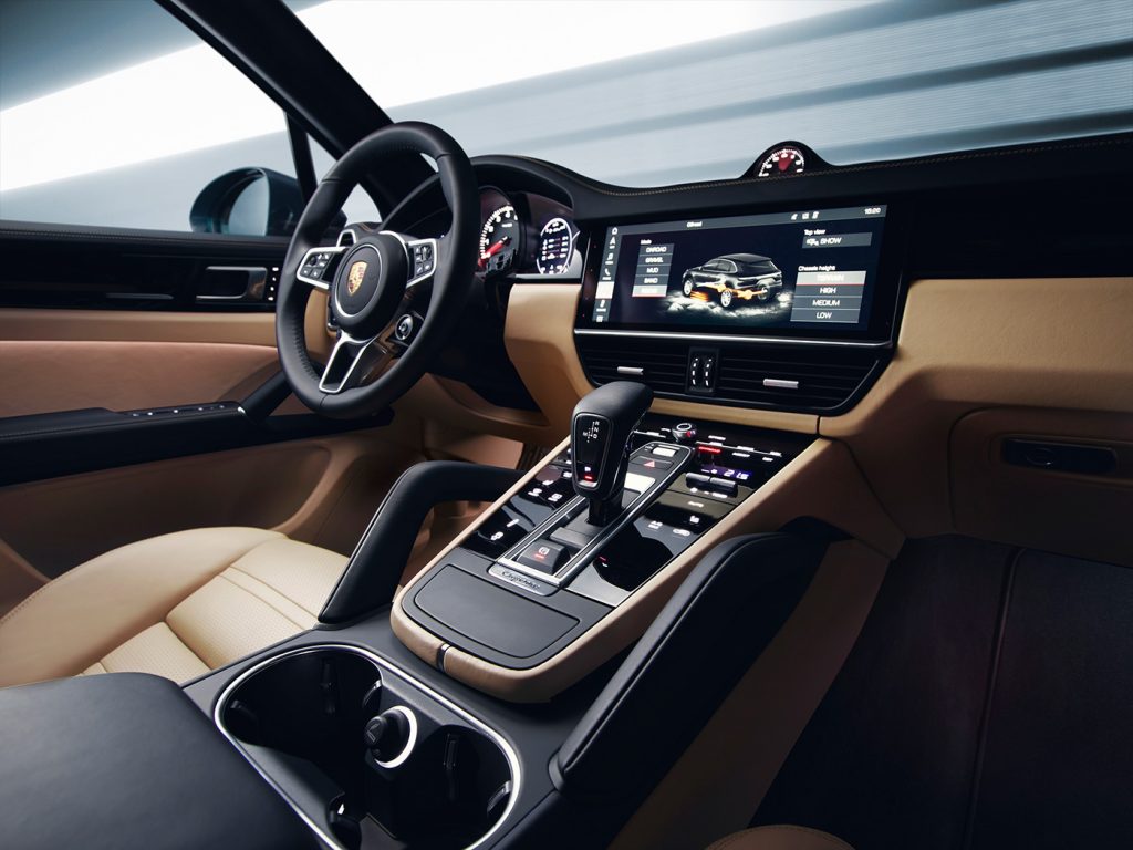 En el caso del Cayenne Turbo la aerodinámica activa es importante pues mediante un spolier trasero en el techo se puede aumentar o disminuir la carga aerodiánmica según su posición, además el nuevo Cayenne cuenta con modos de conducción para hacerlo diferentes superficies como lastre, barro, arena y piedras.