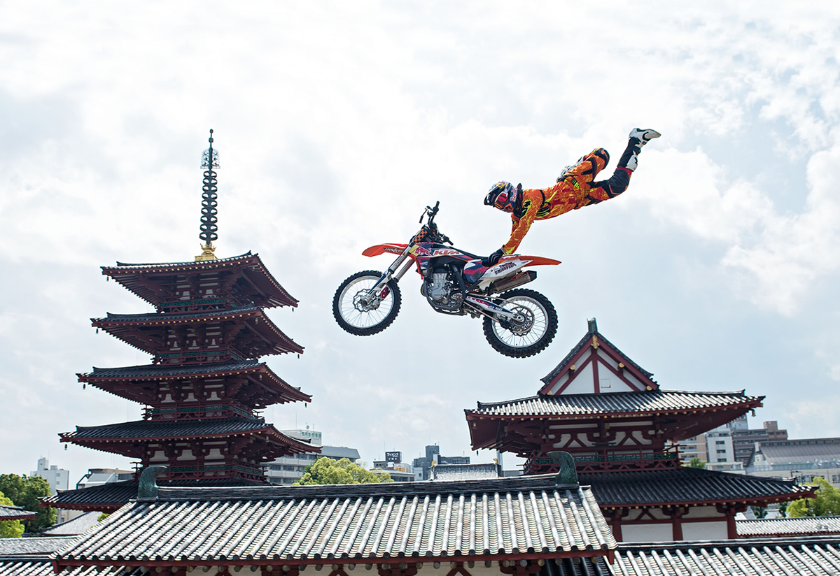 OSAKA, Japón – El templo de Shitennoji de Osaka, uno de los lugares más queridos del país, ha sido testigo de 15 siglos de la impresionante y densa historia de Japón, pero este jueves, este lugar tan tradicional se ha reunido con un tipo de modernidad que jamás se había visto tan cerca de este emblemático edificio: el ruido y la emoción del motocross freestyle.